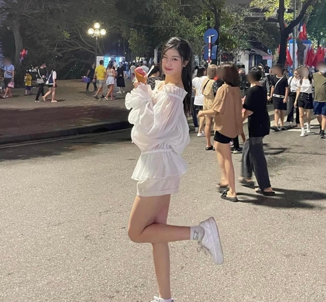 Mới đây, trên mạng xã hội bất ngờ chia sẻ hình ảnh một cô gái xinh đẹp ở phố đi bộ Hồ Hoàn Kiếm (Hà Nội). Trong hình, mỹ nhân này mặc một chiếc áo voan trắng trễ vai phối cùng quần short trắng, đi giày thể thao. "Xinh như thần tiên tỷ tỷ", "Nhan sắc trong veo, thuần khiết luôn đó", "Bạn này là Á hậu gì xinh xinh đó đúng không?", "Xinh nhất phố đi bộ luôn",... là những bình luận của dân mạng.